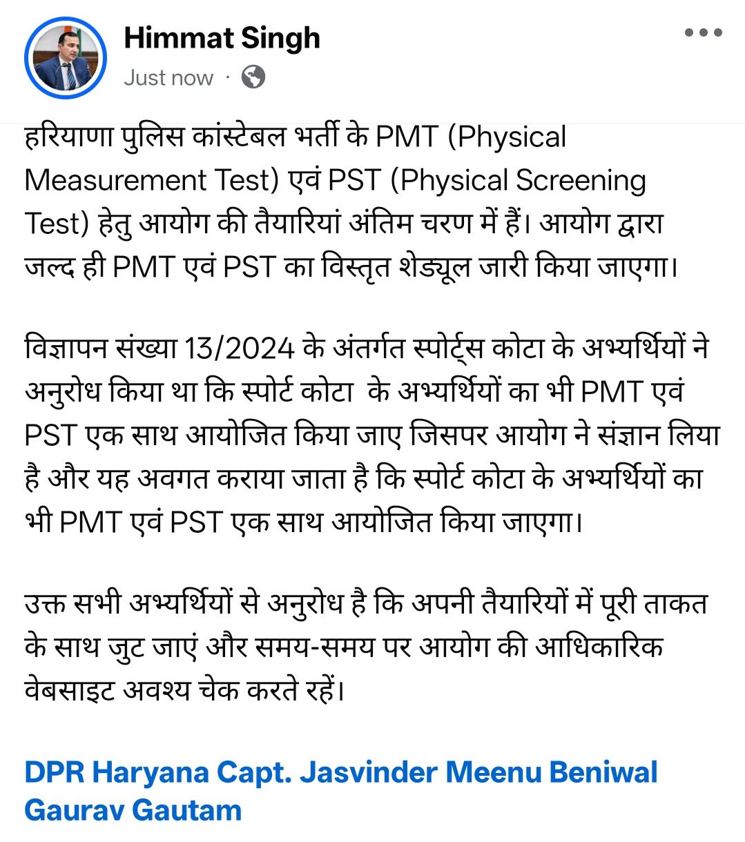 HSSC 13/24 (Sports Quota) PMT/ PST Update